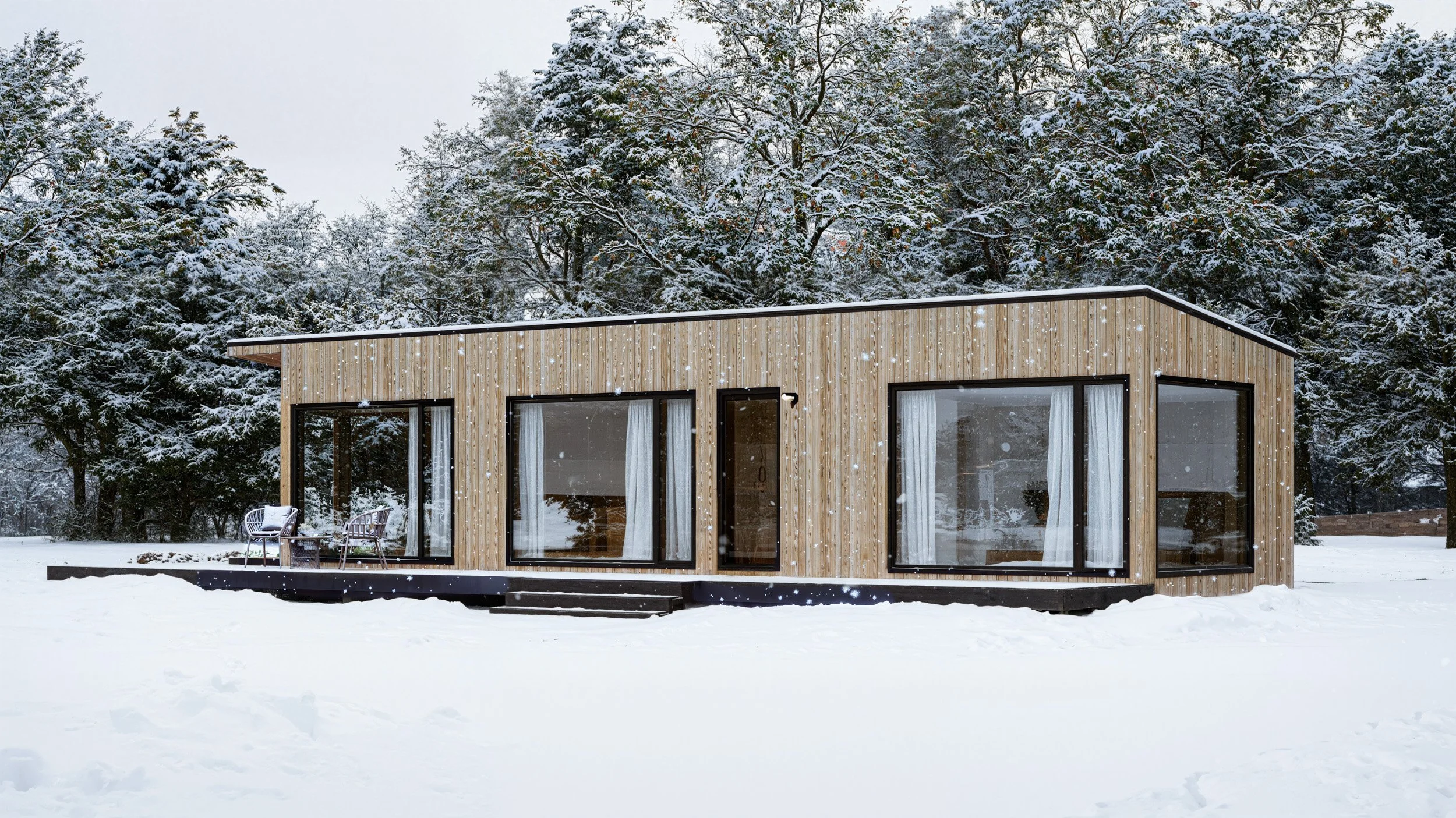 The large expanse of windows and open plans create an unprecedented spacious feel for the square footage. These cabins bring the outside in and immerse you in your surroundings in a luxurious and calming environment.