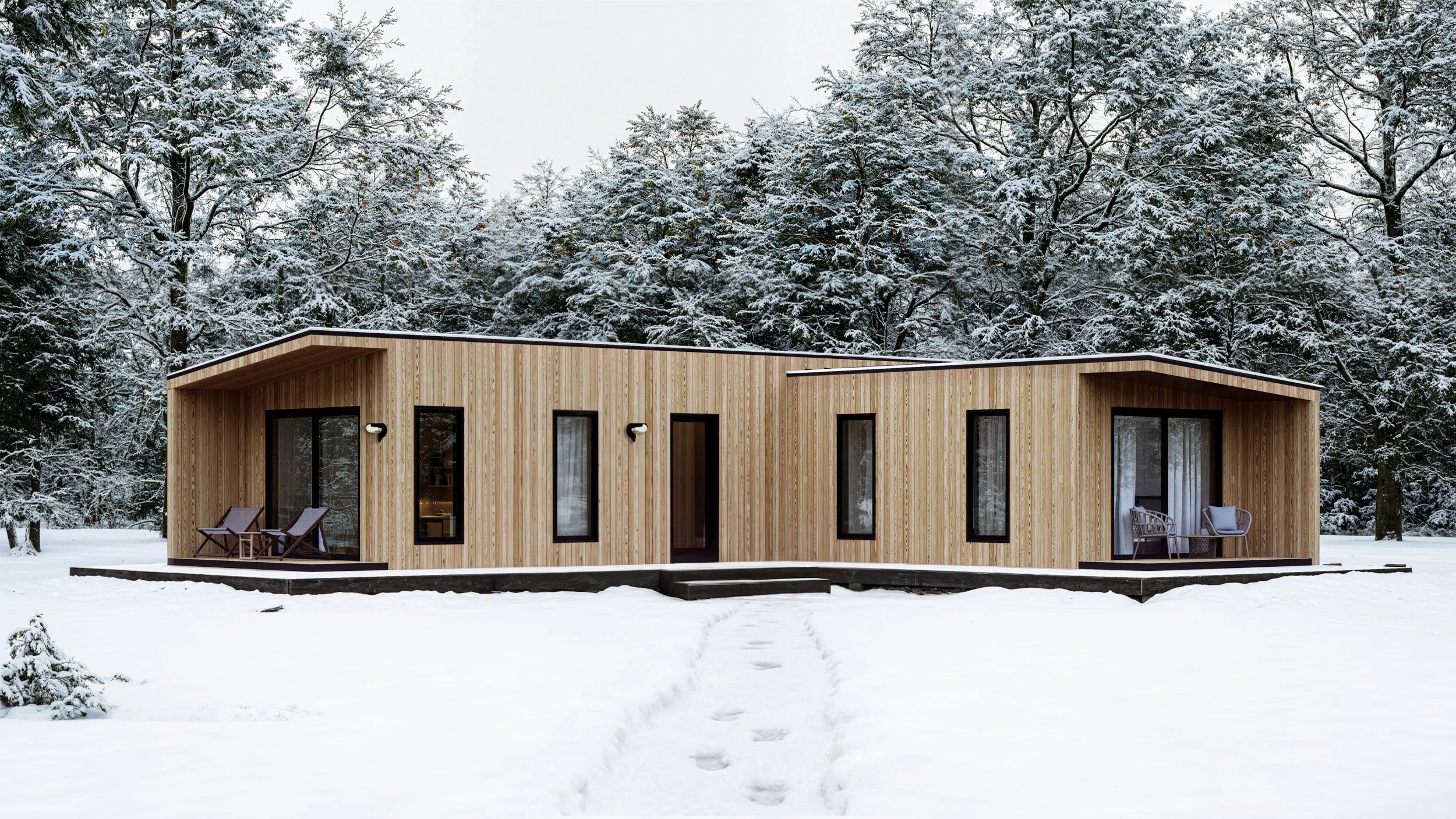 The large expanse of windows and open plans create an unprecedented spacious feel for the square footage. These cabins bring the outside in and immerse you in your surroundings in a luxurious and calming environment.