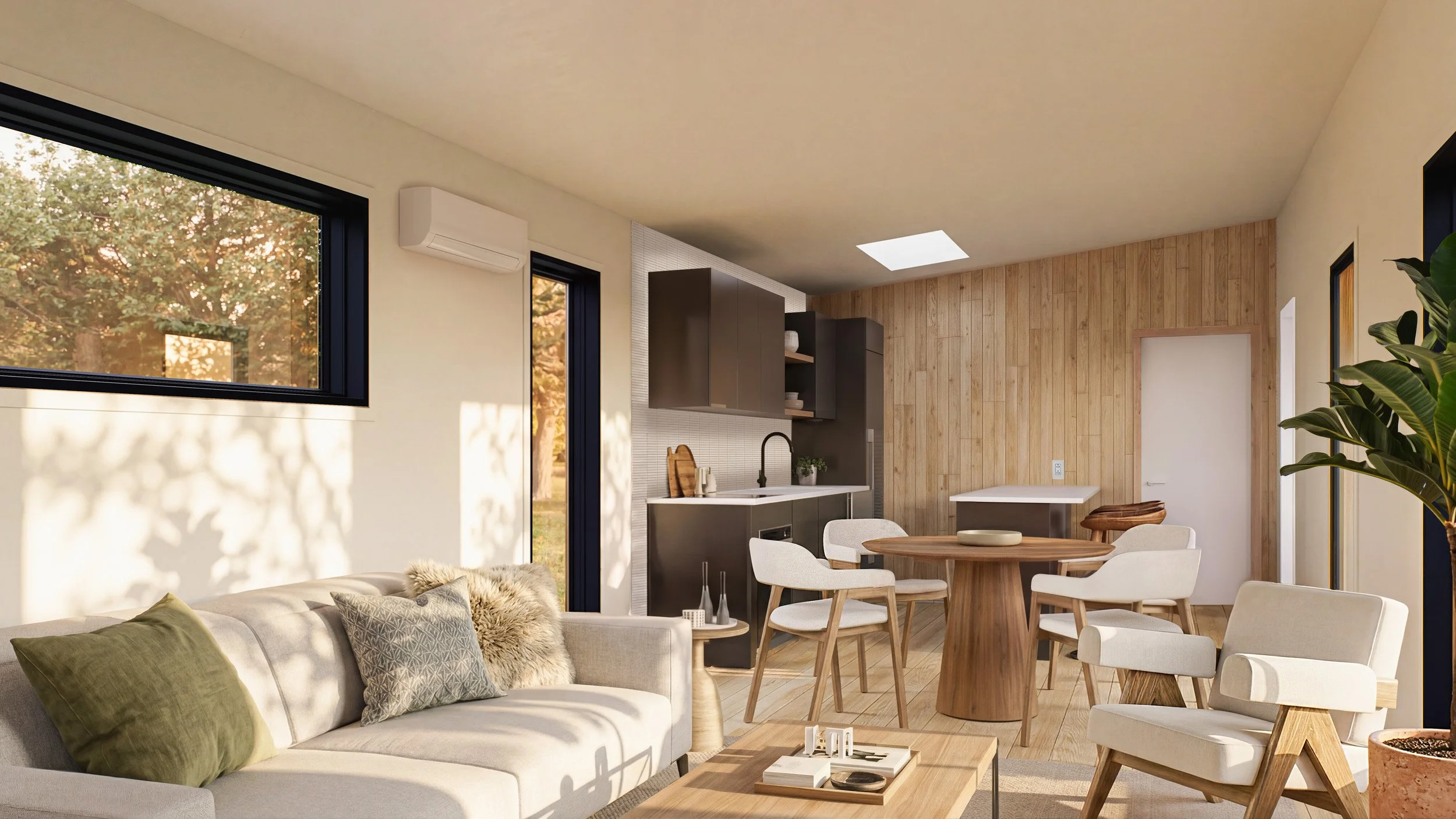 The Linden Cabin is our second largest offering, complete with 2 bedrooms and 1 bathrooms. Its thoughtful layout supports relaxed living, with open shared space, a generous kitchen area, and an intuitive flow that makes the cabin feel both efficient and generous. Built in the USA using elevated, durable materials and delivered fully finished, the Linden Cabin offers a seamless path from delivery to daily life. Whether used as a weekend retreat or a full-time home, it creates a sense of ease, designed to settle naturally into its surroundings and the rhythm of those who live there.